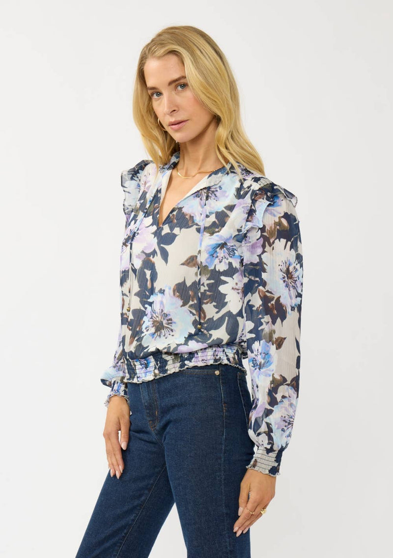 Long Sleeve V-Split Neck Smocked Hem & Cuff Top